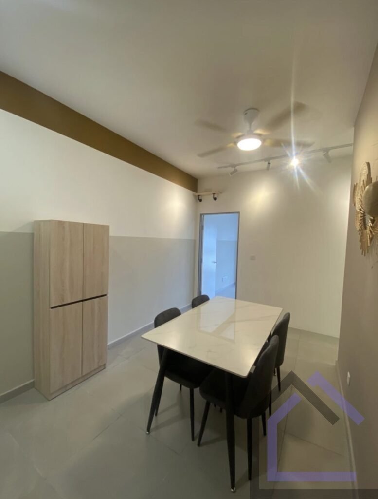 Enjoy a move-in ready home equipped with modern furnishings such as air conditioning, TV, sofa, dining set, kitchen cabinet with hood & hob, refrigerator, washing machine, and more.